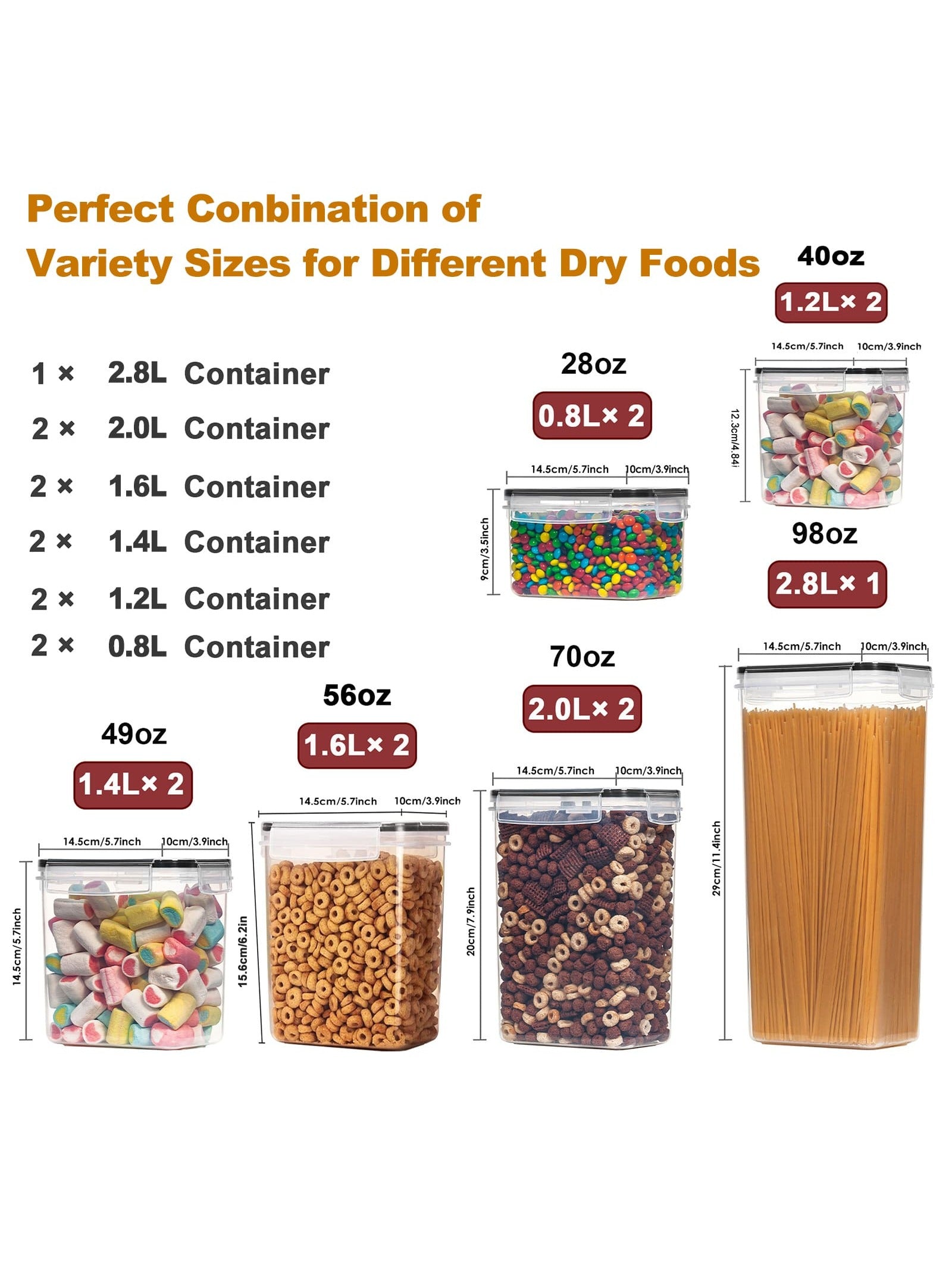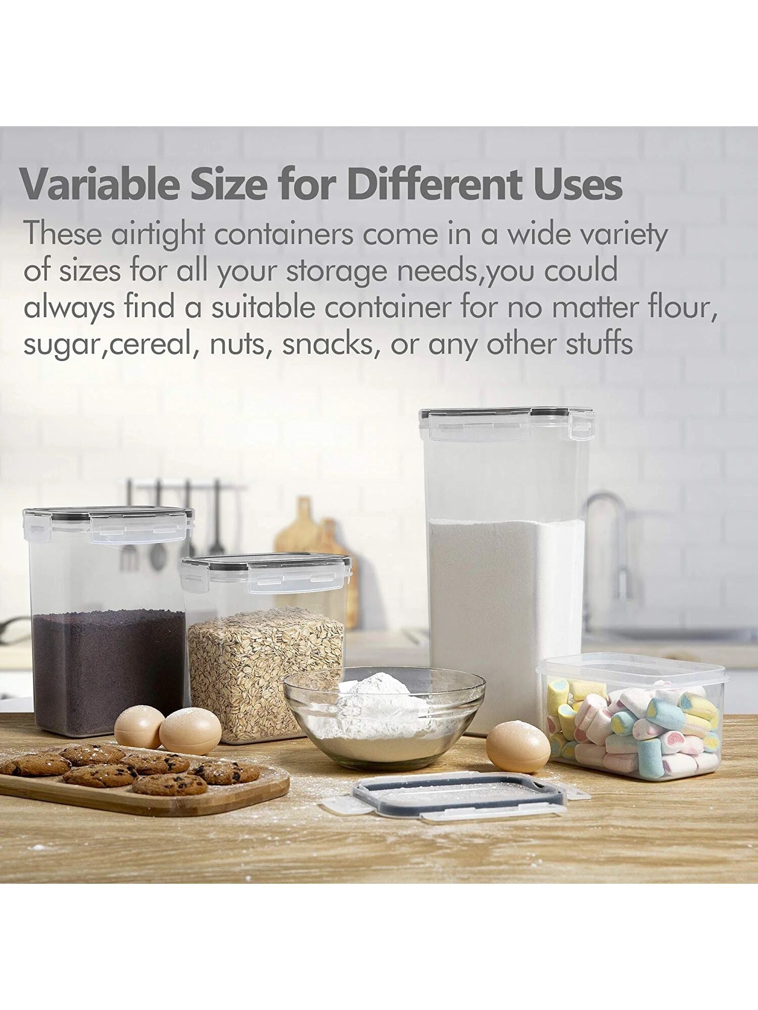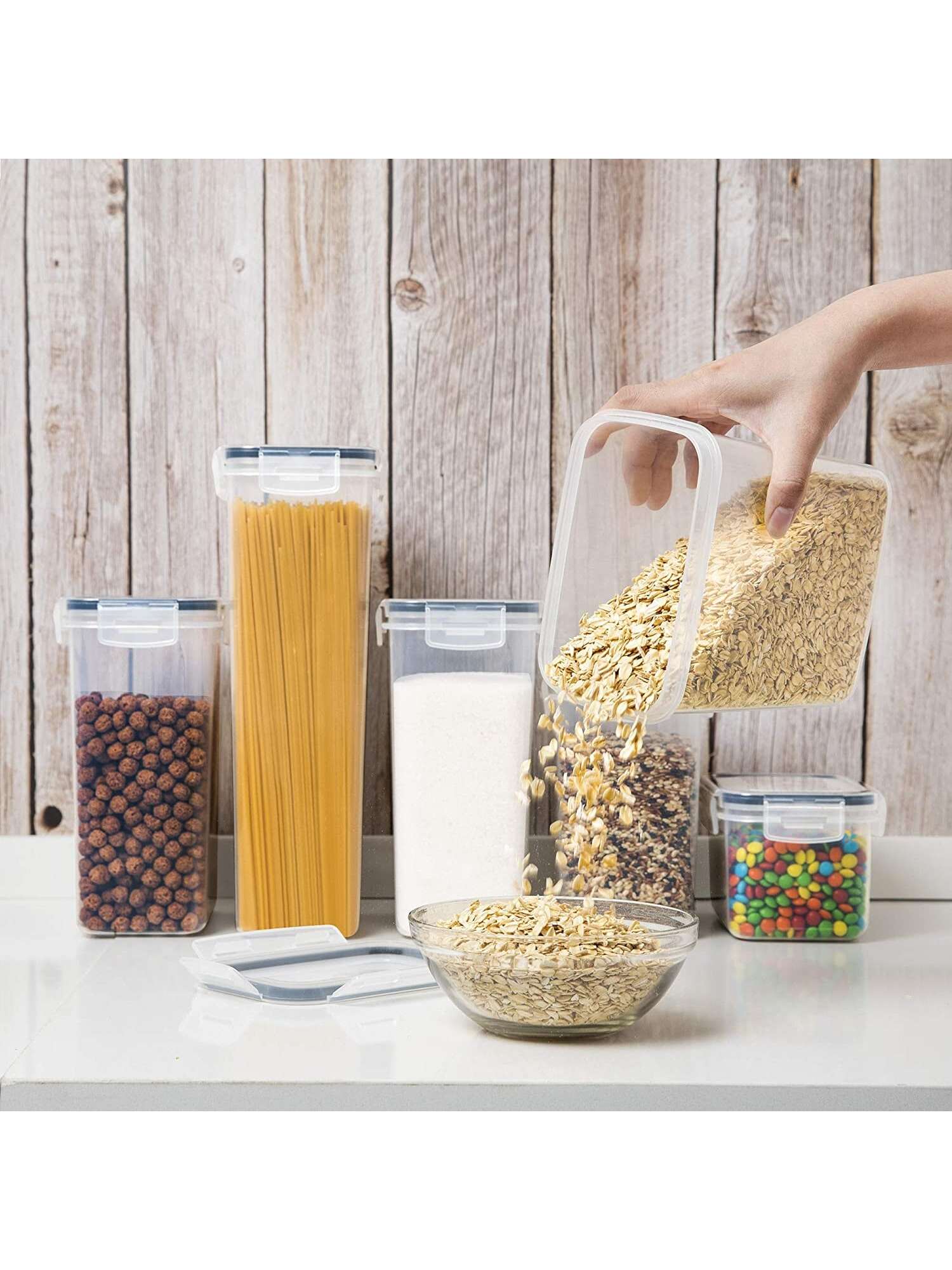 Versatile Functionality: Whether you're storing dry goods, pantry staples, or meal-prepped delights, our containers offer versatile storage solutions to accommodate all your culinary needs. From grains and cereals to snacks and pastas, each container is thoughtfully sized to maximize space efficiency while maintaining a clutter-free environment.