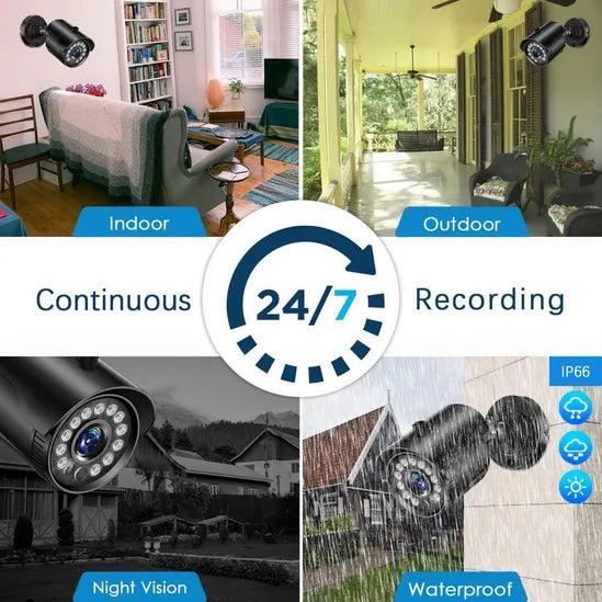 24/7 Surveillance: With motion detection and continuous recording capabilities, this system ensures your property is monitored at all times, day or night.