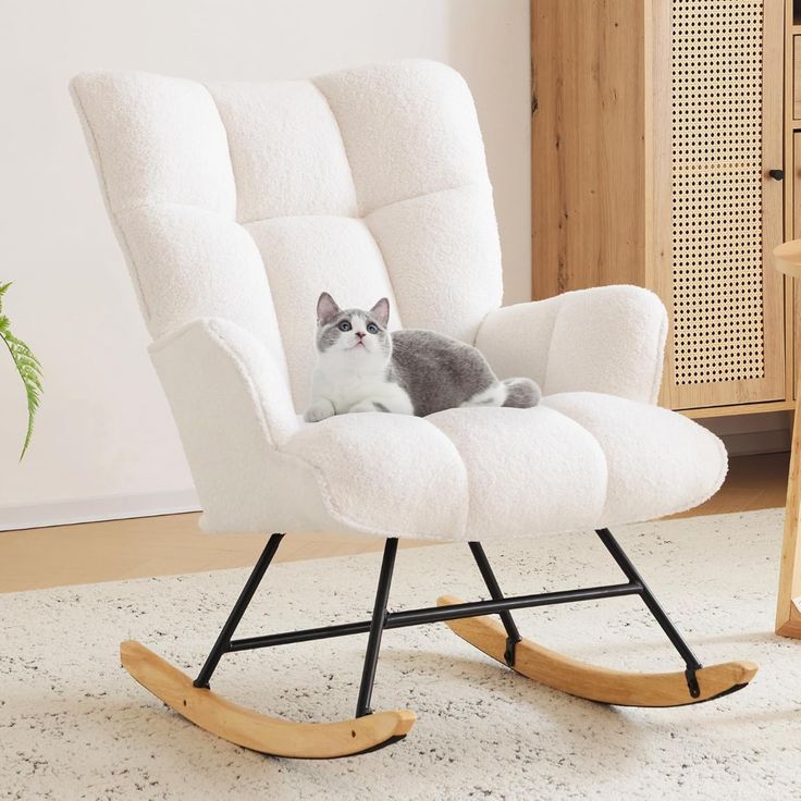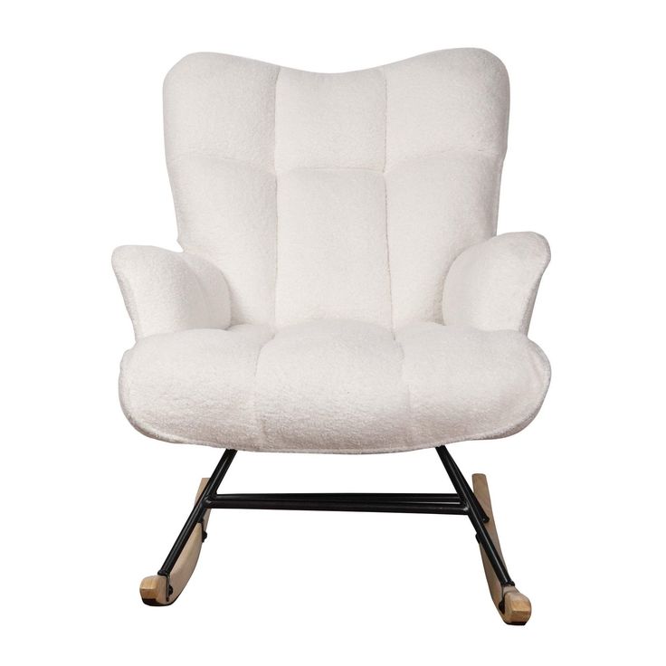Teddy Rocking White Chair for Nursery, Comfy Rocking Armchair with High Backrest